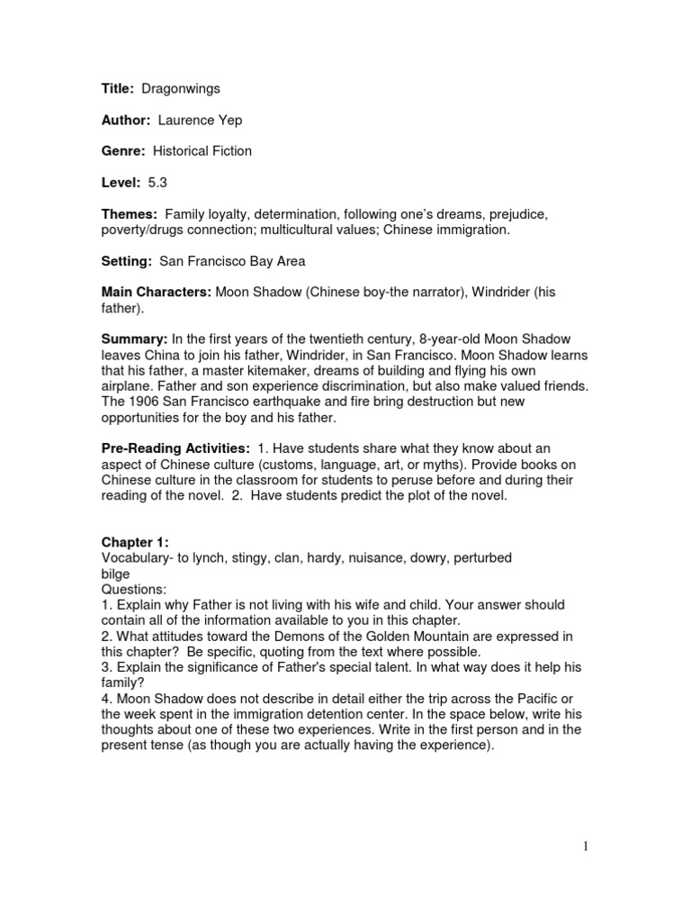 The Basic Independent Novel Study Dragonwings By Laurence Yep