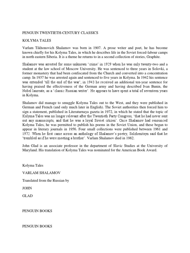 Kolyma Tales Fiction Literature